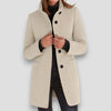 I bottoni classici e il collo alto creano un look sofisticato che non passa mai di moda.