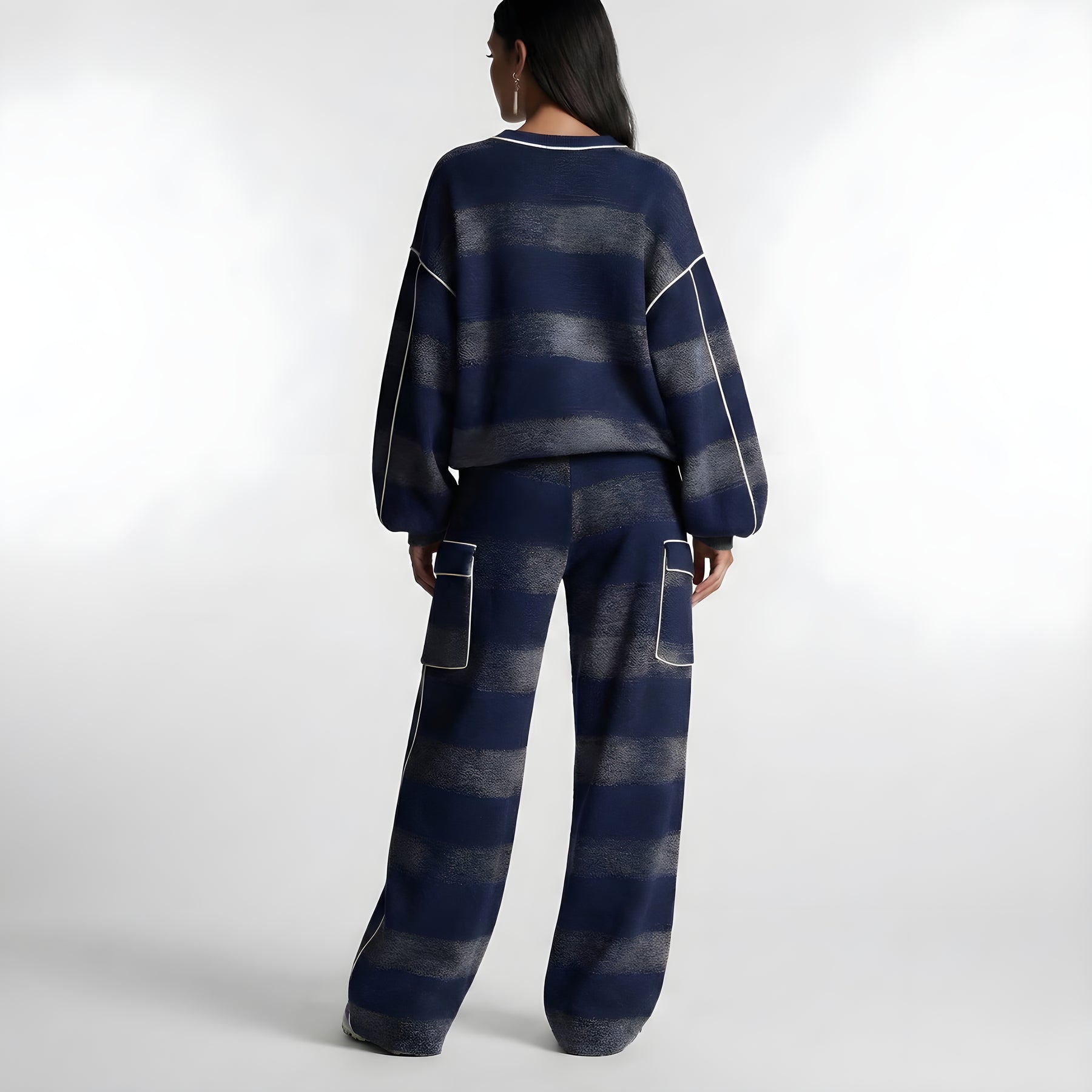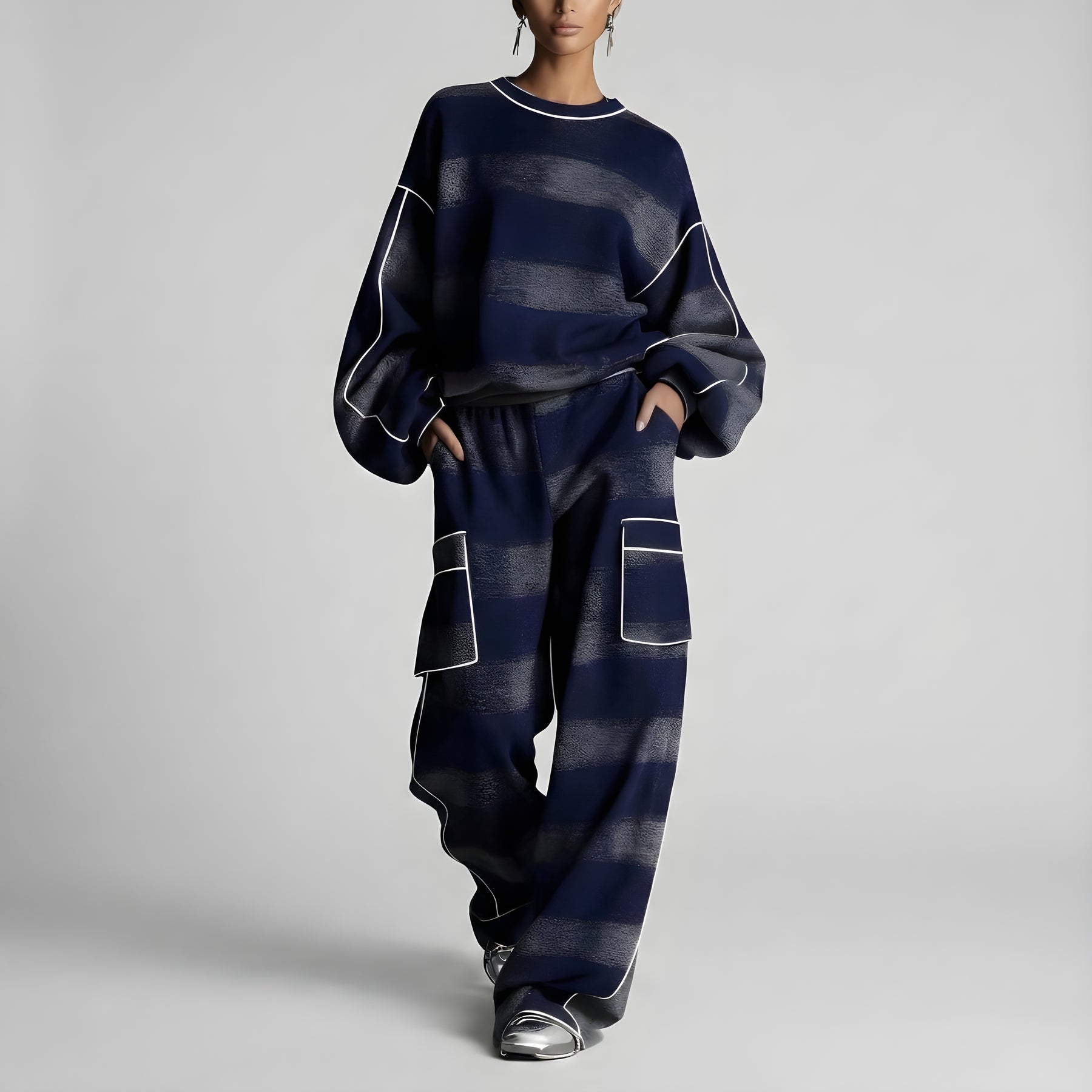 Il Silvia™ Completo nasce dall’incontro tra comfort quotidiano e stile ricercato. La maglia morbida avvolge il corpo con naturalezza, mentre la vestibilità oversize crea un equilibrio moderno tra libertà di movimento ed eleganza discreta. Il motivo a righe aggiunge profondità e personalità, evocando momenti lenti, atmosfere accoglienti e un approccio consapevole al vestire.
